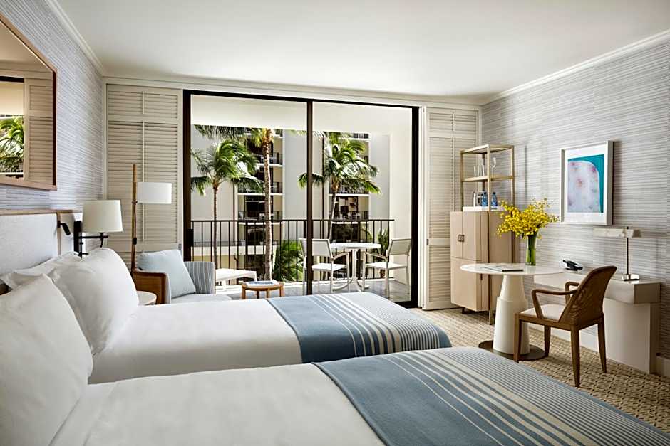 Featuring a balcony with garden courtyard views, this room features free Wi-Fi, and a flat-screen cable TV. An private bathroom with plush bathrobes, premium toiletries, marble vanities, deep soaking tub and separate glassed-in shower is included. A welcome basket of fresh fruit and custom Halekulani chocolates is also provided.